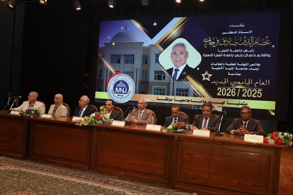 لقاءً تعريفيًا موسعًا بالطلاب الجدد بجامعة المنيا الأهلية بحضور رئيس الجامعة ونائبه وعمداء الكليات